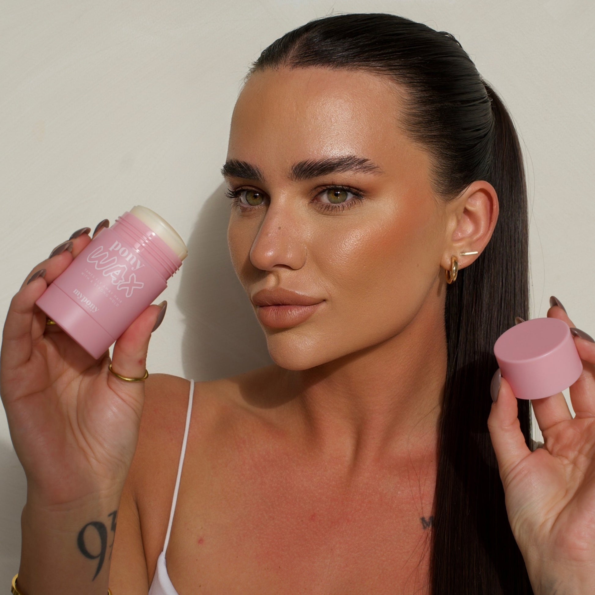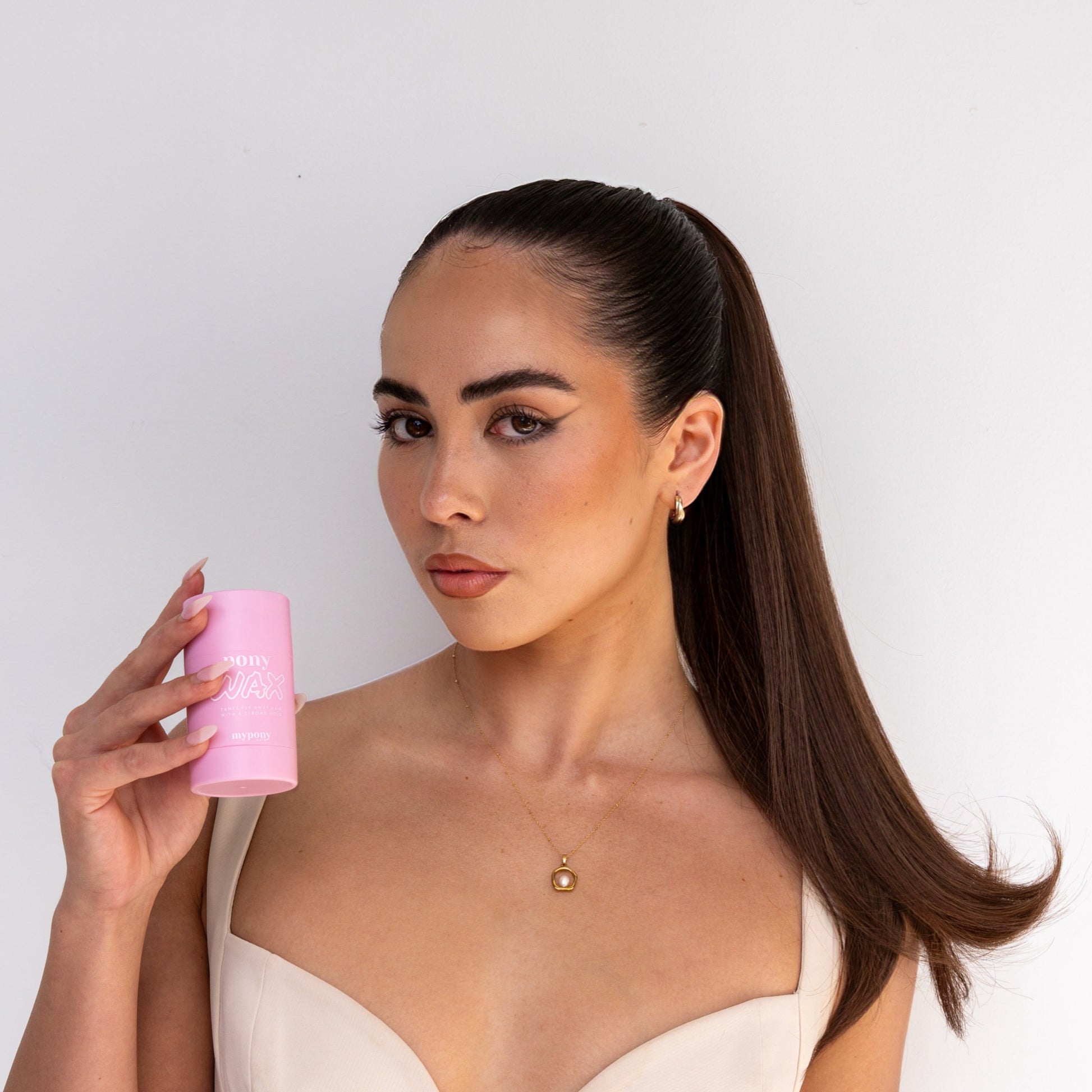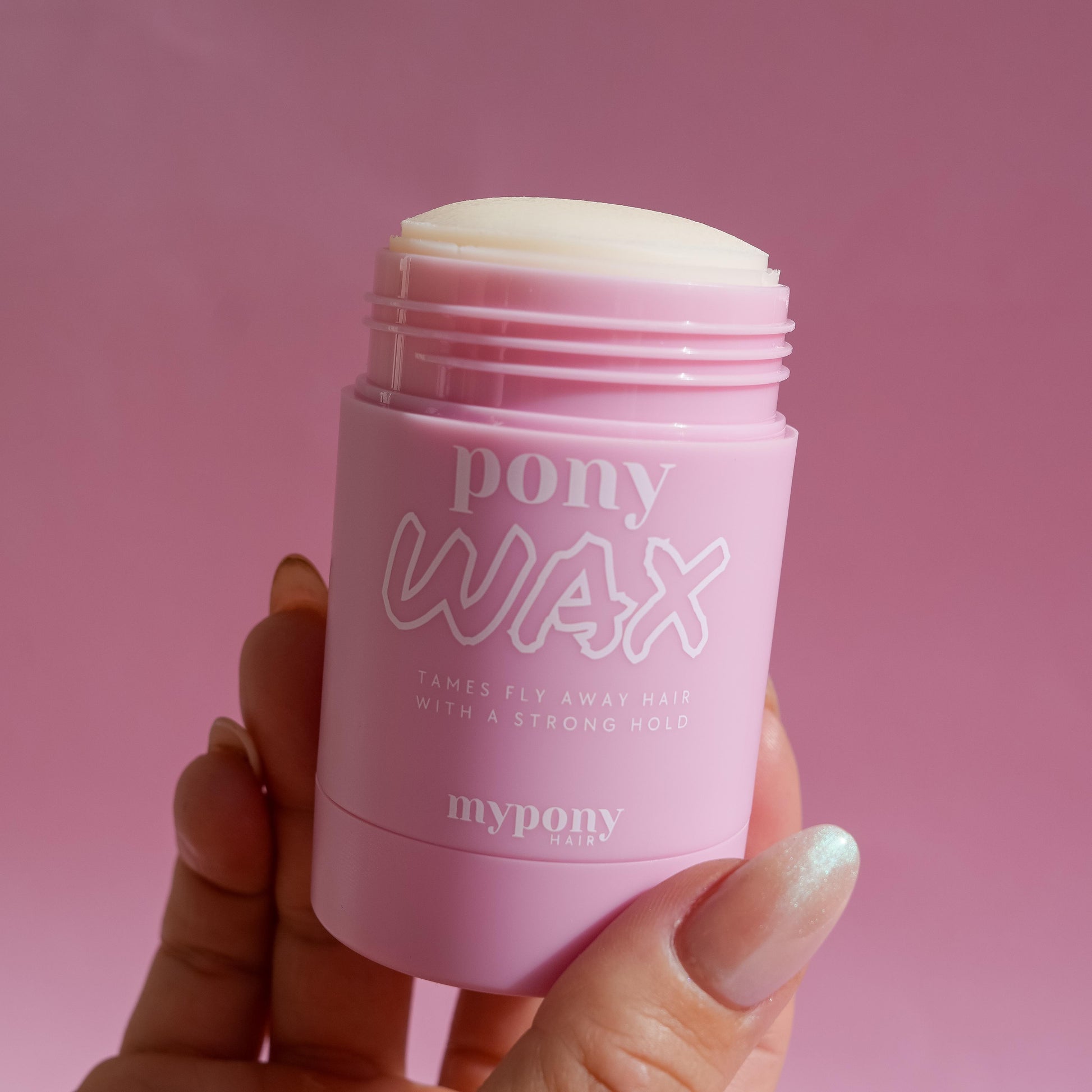 The secret to a sleek ponytail. Pony Wax smooths flyaways and holds your style all day with no flakes, no crunch, no stiffness.